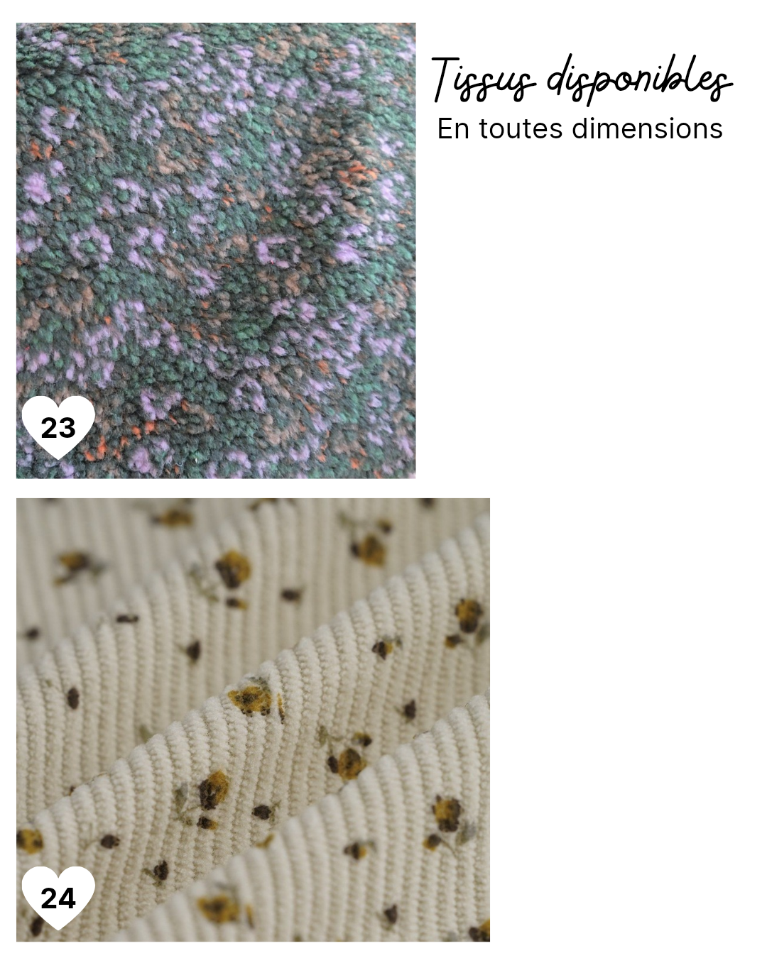 Merci d'indiquer le numéro du tissu choisi dans l'encart prévu à cet effet