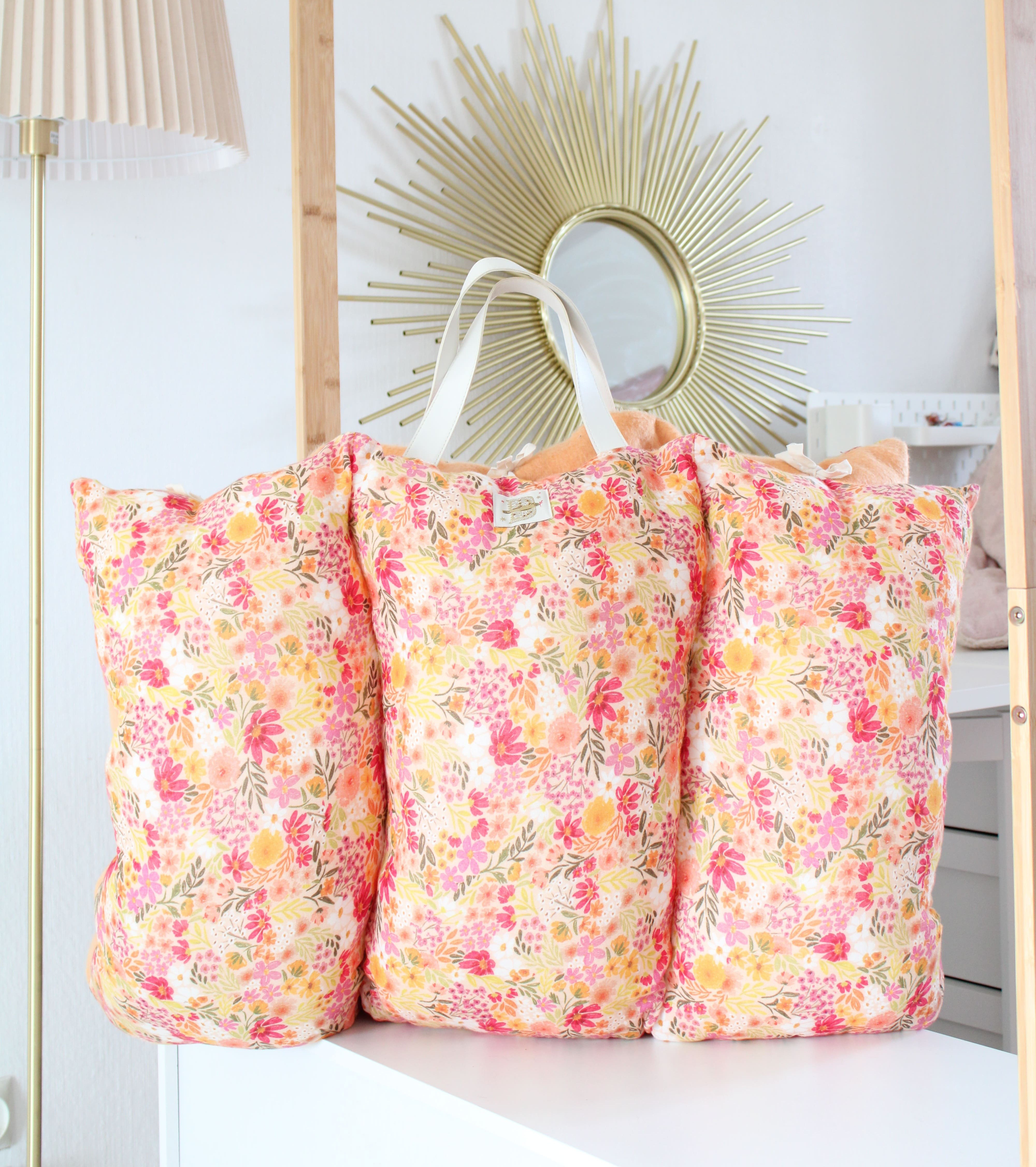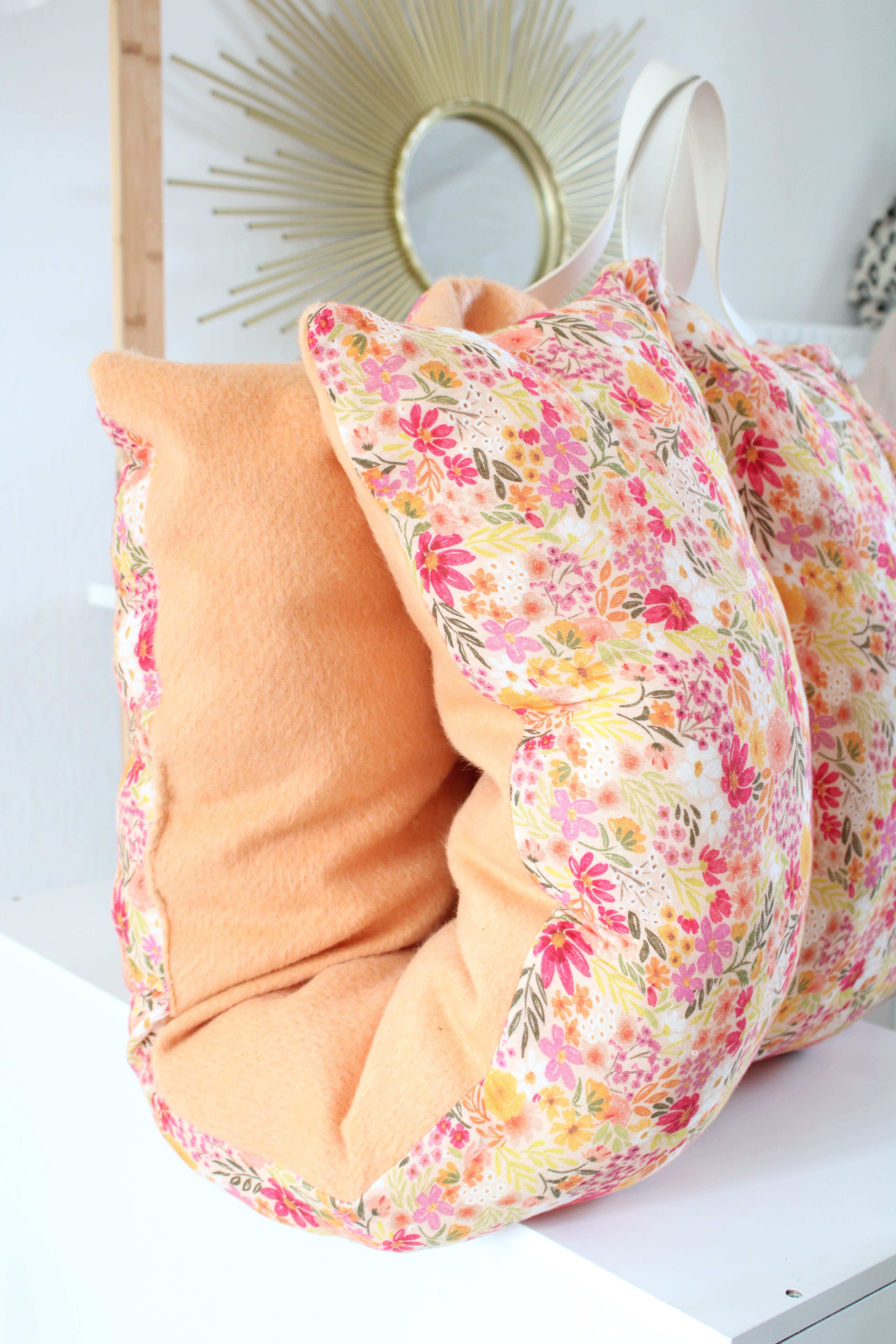 Matelas de voyage Champêtre : avec une face en double gaze de coton et une face en lainage pêche 🍑
